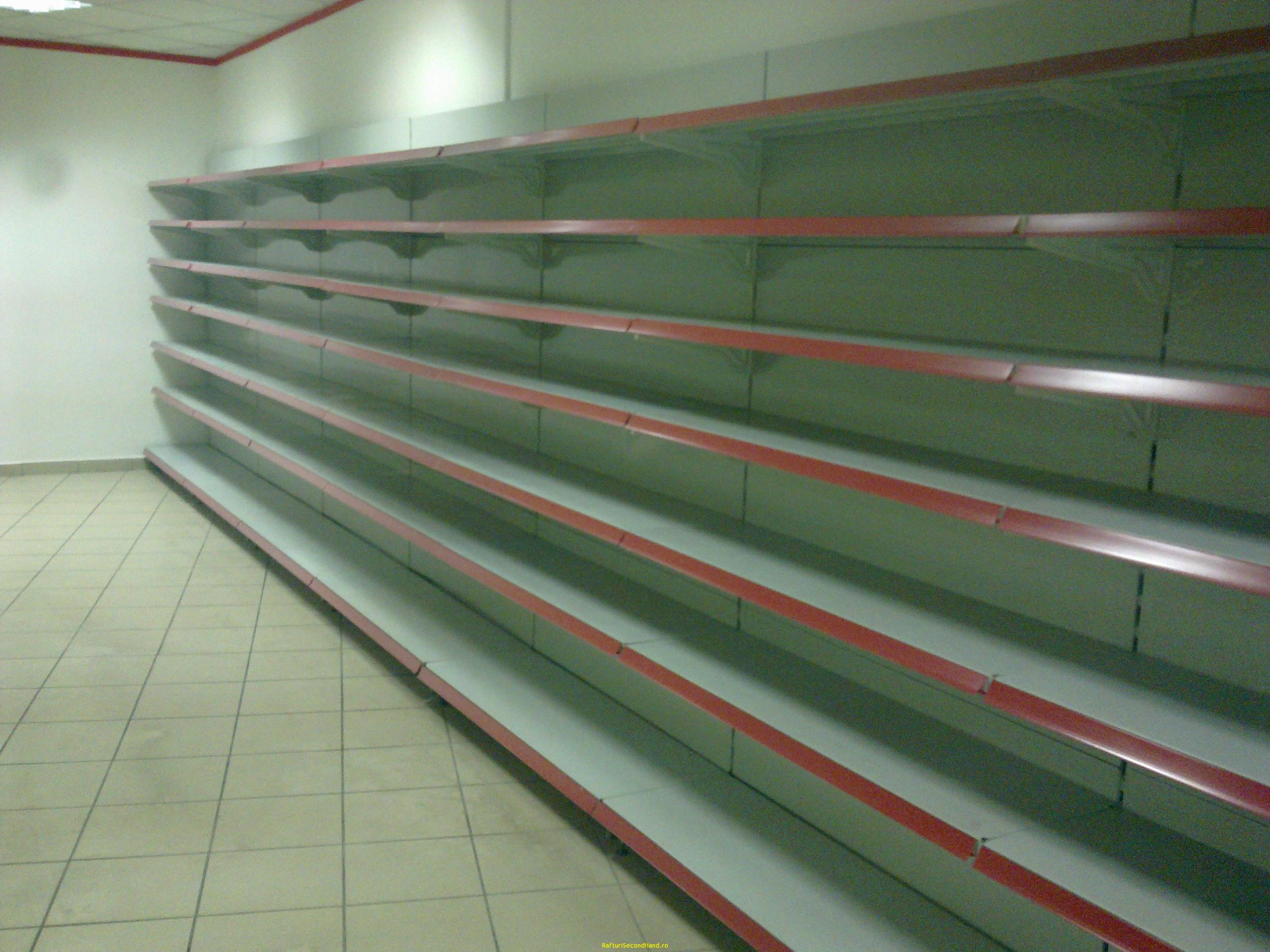 Sunt rafturi metalice de magazin cu inaltime de 2m si 5 polite pe modul in varianta standard. Lungimea modulului de raft este de 1m .Culoarea regletelor din plastic pentru preturi poate fi gri sau rosie Pretul este de 379 ron + tva pe metrul liniar de raft de perete, iar stalpul final costa 90 ron+tva bucata .Transportul este gratuit la comenzi peste 8000 ron. Comenzi la tel 0723 668868.